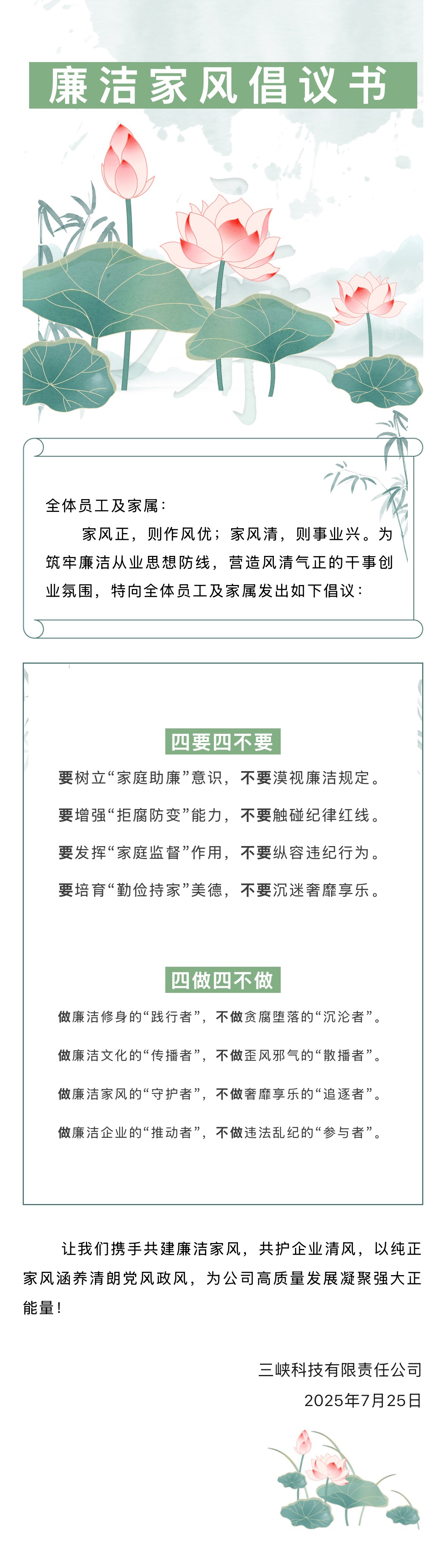 廉潔家風(fēng)倡議書